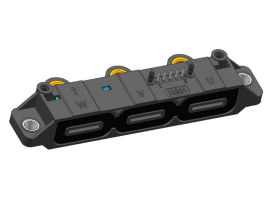 该系列传感器的结构与功能设计,进一步放大了全随动输出的应用价值。采用三合一封装设计,支持客户灵活选择2相或3相检测,完美适配mini-square紧凑型IGBT模块(长款),小型薄型结构可节省电控系统安装空间。内置螺母设计便于与铜排快速固定,简化装配流程的同时保障连接稳定性,为全随动信号的稳定传输提供结构支撑。原副边有效隔离设计则避免了车载电磁干扰对全随动输出信号的影响,使其在强干扰环境下能保持信号纯净度。