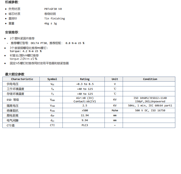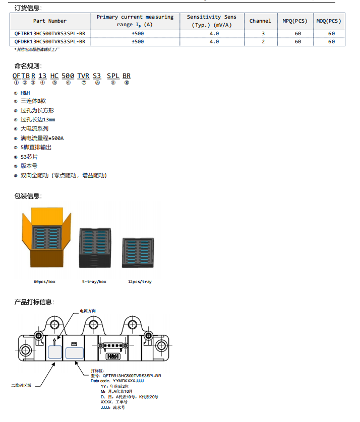 QFTBR13HC500TVRS3SPL-BR、QFDBR13HC500TVRS3SPL-BR电流传感器是为汽车应用领域低电压,大电流设计的三合一产品,为AC/DC,或脉冲电流检测提供了速度更快,性价比更高的解决方案,并为原边和副边提供了有效隔离。同样外壳可以提供最大±600A多种不同电流测量规格。