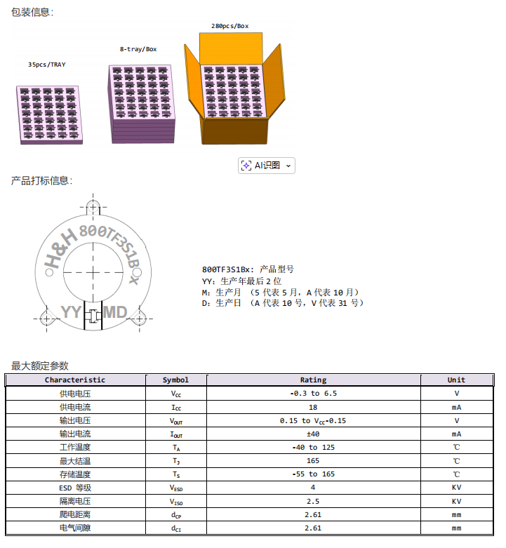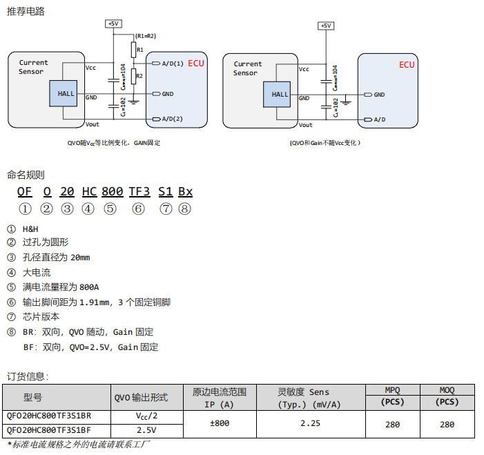 QFO20HC800TF3S1BR、QFO20HC800TF3S1BF电流传感器为工业和汽车应用领域内AC,DC的电流检测提供了可靠,性价比更高的解决方案。并为原边和副边提供了有效隔离,同样外壳可以提供从±400A到±1000A多种不同电流测量规格。