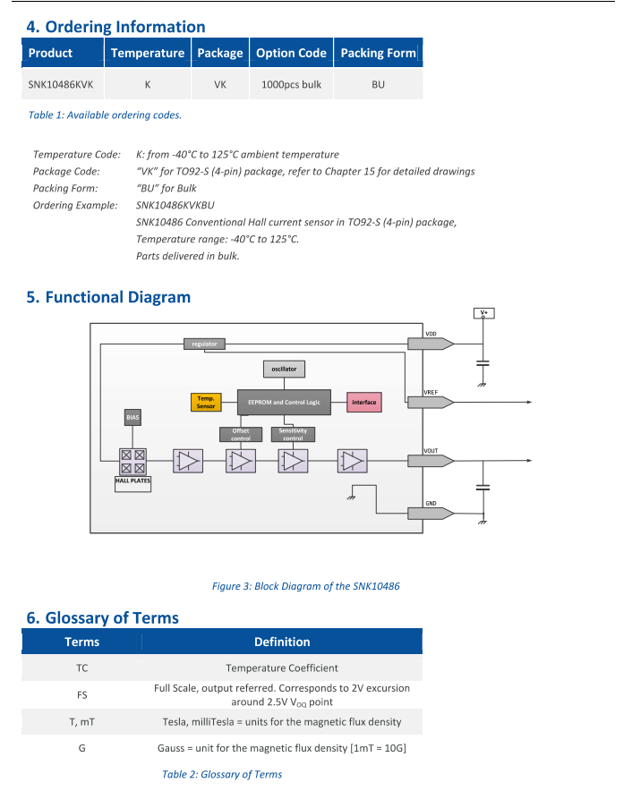 SNK10486 是一款单片式可编程霍尔传感器集成电路,采用平面霍尔技术,对垂直作用于集成电路表面的磁通密度具有高度敏感性。该传感器能输出与所施加的磁通密度成正比的信号,特别适用于电流测量。