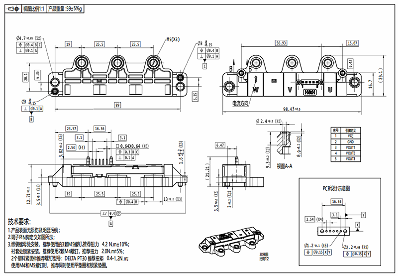 ● 适用于mini-square紧凑型IGBT模块(长款)
