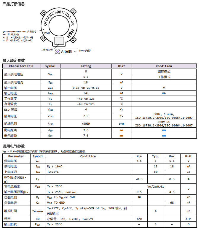 QFO19HCxxxTFHS1-BR系列电流传感器为工业和汽车应用领域内AC,DC的电流检测提供了可靠,性价比更高的解决方案。并为原边和副边提供了有效隔离,同样外壳可以提供从±500A到±900A多种不同电流测量规格。