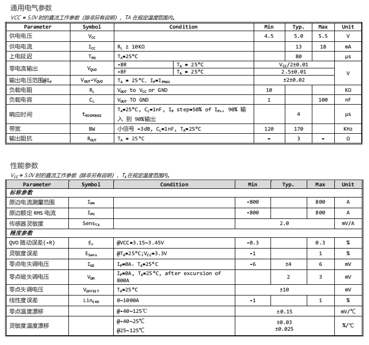 l 原边测量电流范围±1000A