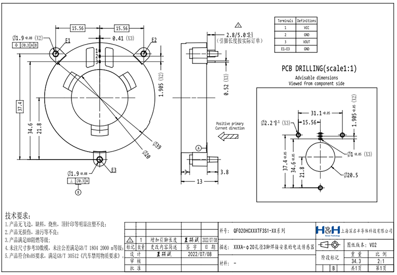 特定的Hall芯片通过放大VH从而得到电压来推算出原边电流。