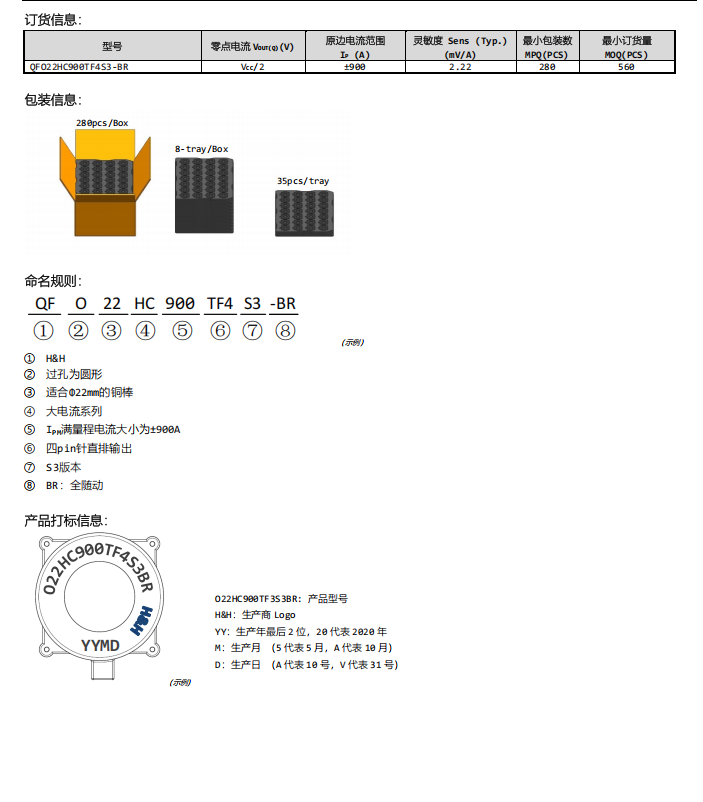 QFO22HC900TF4S3-BR系列电流传感器为工业和汽车应用领域内AC,DC的电流检测提供了可靠,性价比更高的解决方案。并为原边和副边提供了有效隔离,此系列可以提供从±400A~±1000A电流测量规格。
